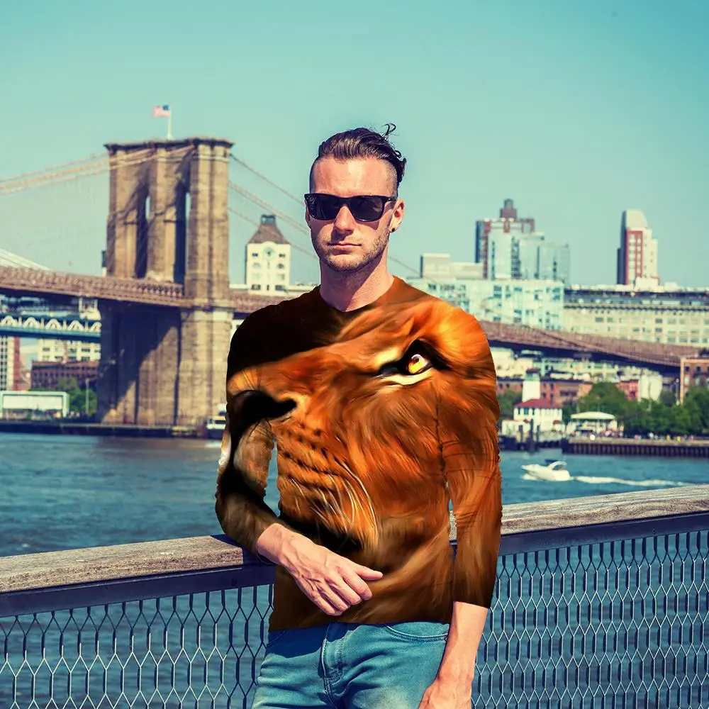 Футболка мужская KYKU Tiger, с длинным рукавом, в стиле хип-хоп