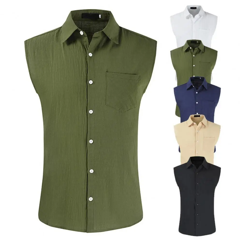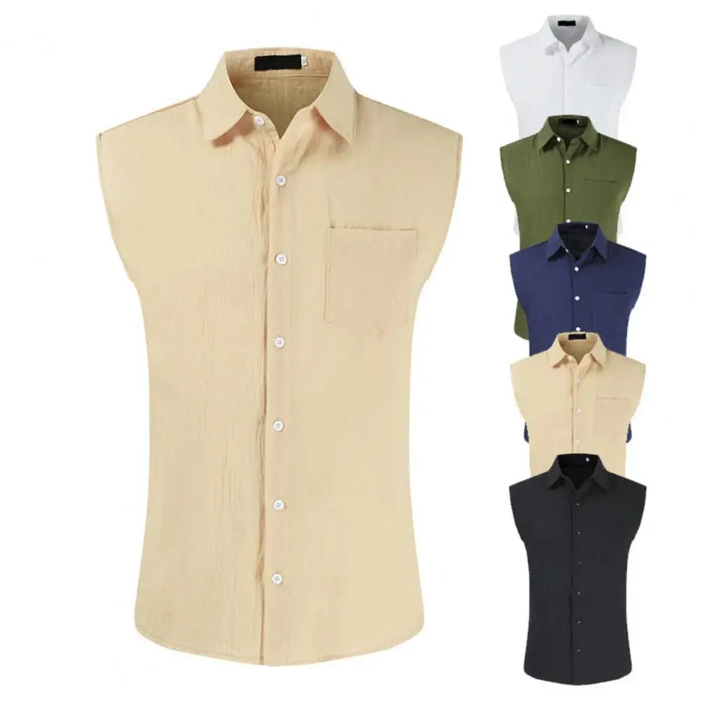 Модная мужская рубашка для кожи однобортный однотонный летний топ с отворотом без рукавов удобная одежда для свиданий