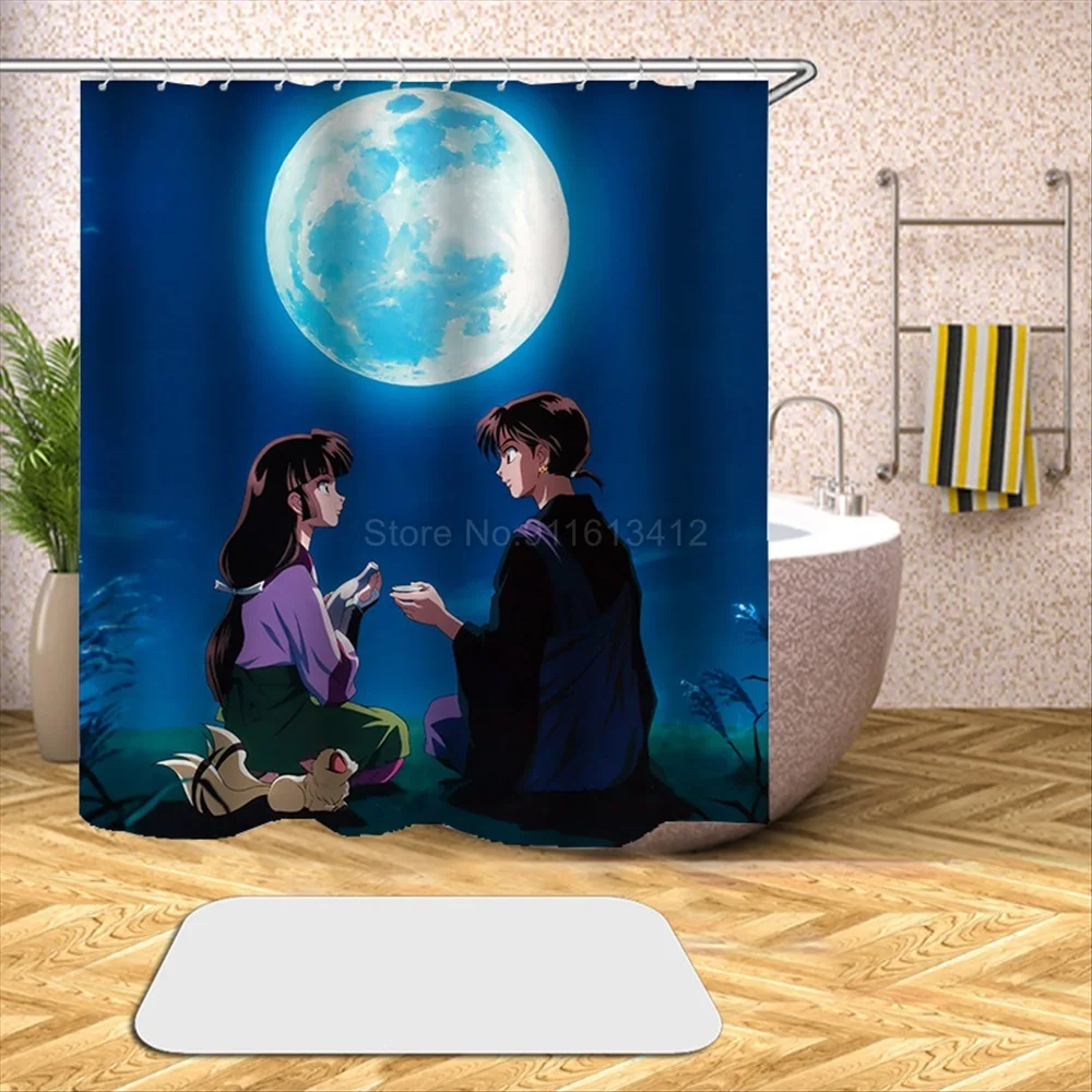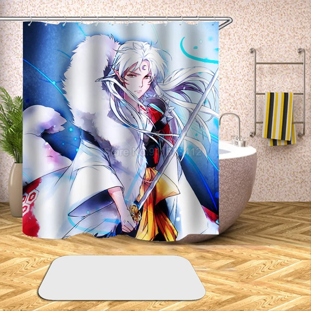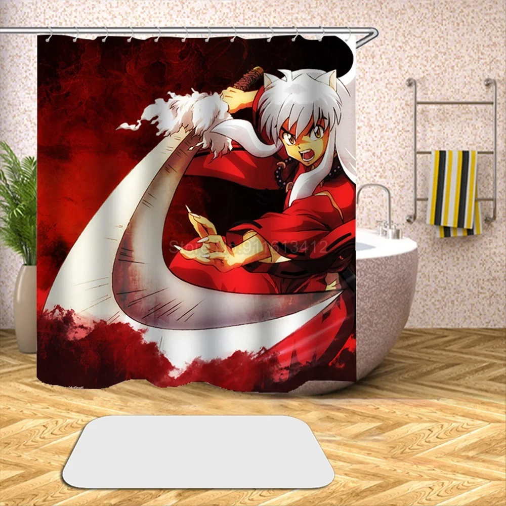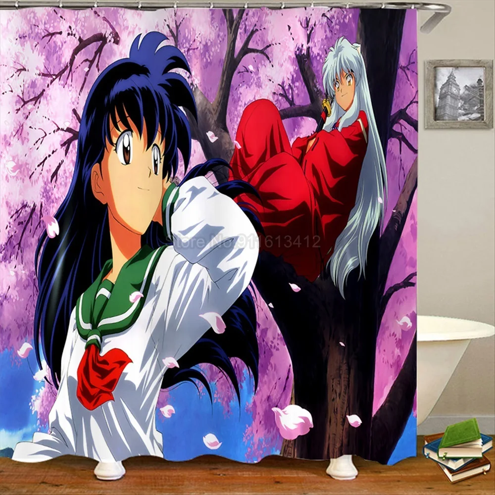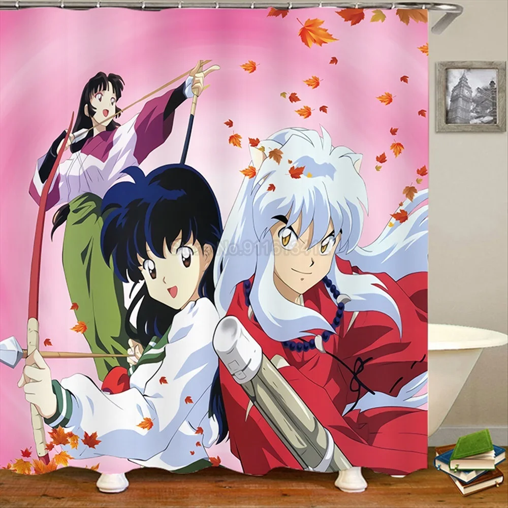 Японское аниме инуяся Водонепроницаемая душевая занавеска для ванной из полиэстера, Женская водонепроницаемая ткань с крючком 180x20, Размер 0 см