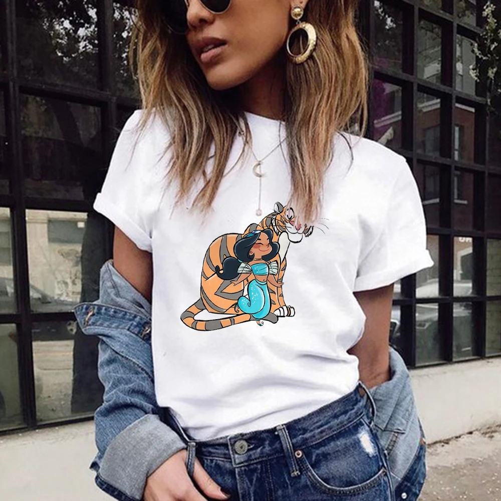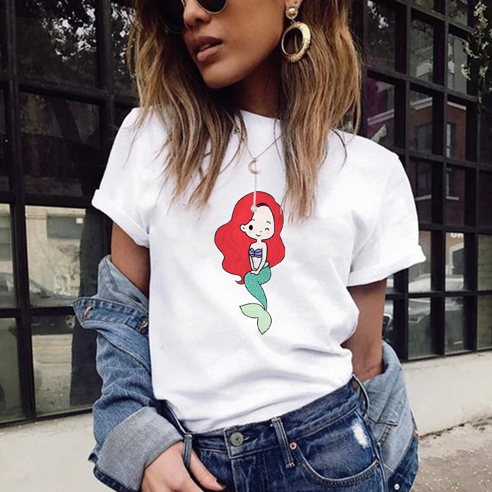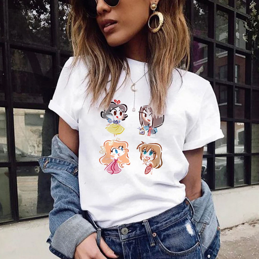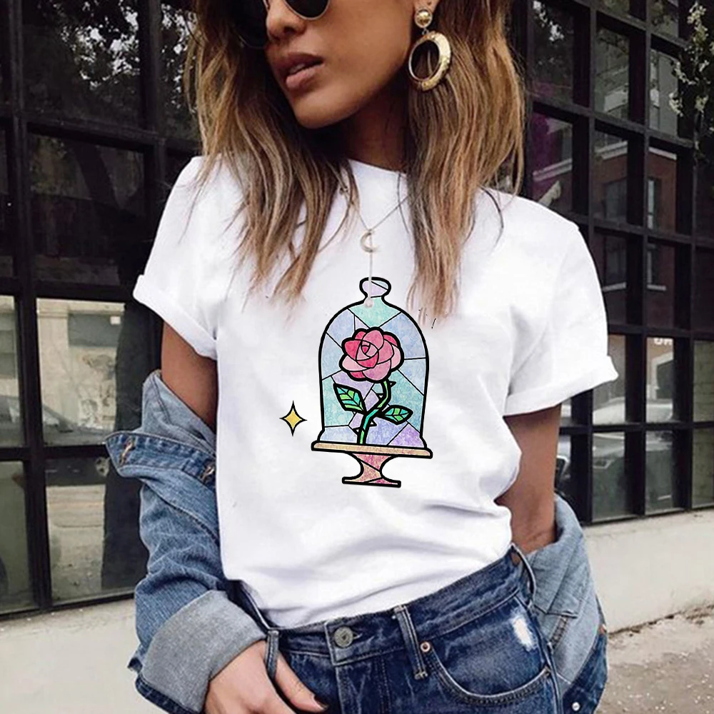 Футболка женская летняя с принтом в виде розы, с круглым вырезом