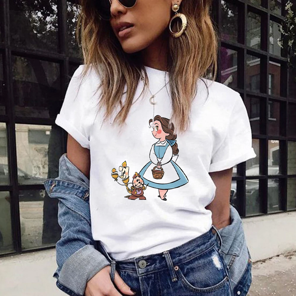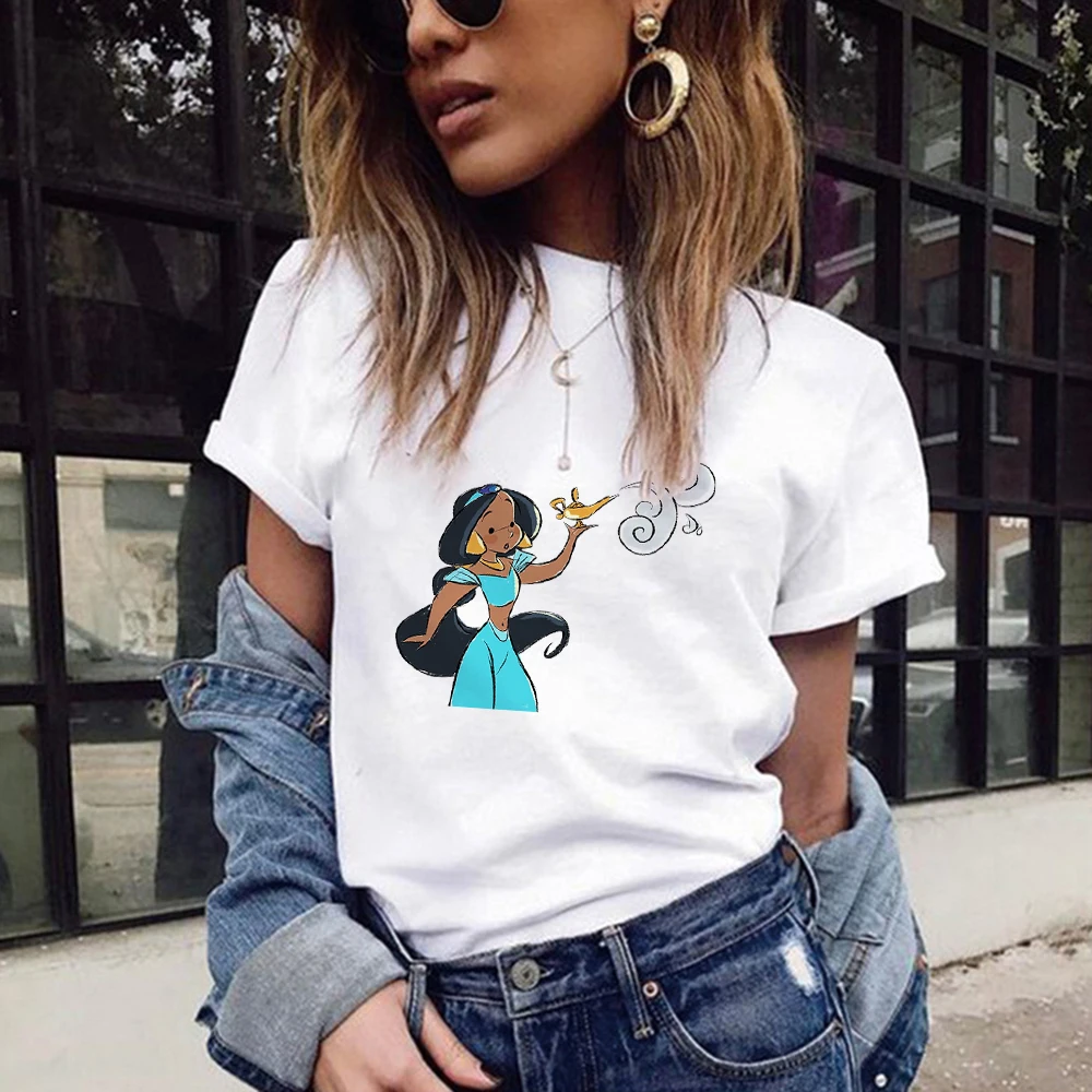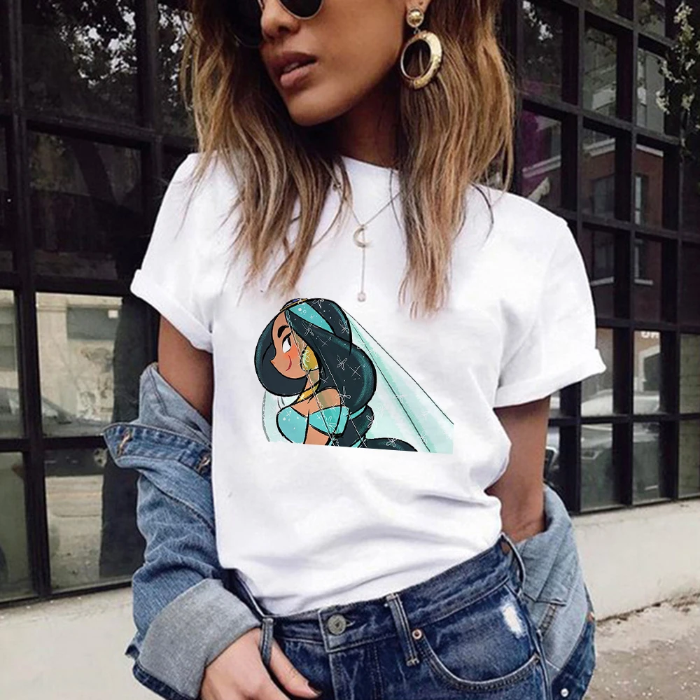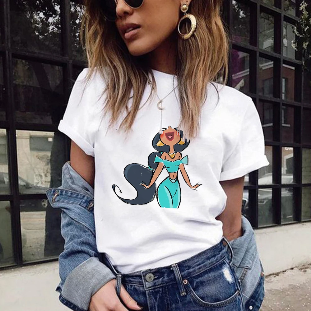Футболка женская летняя с принтом в виде розы, с круглым вырезом