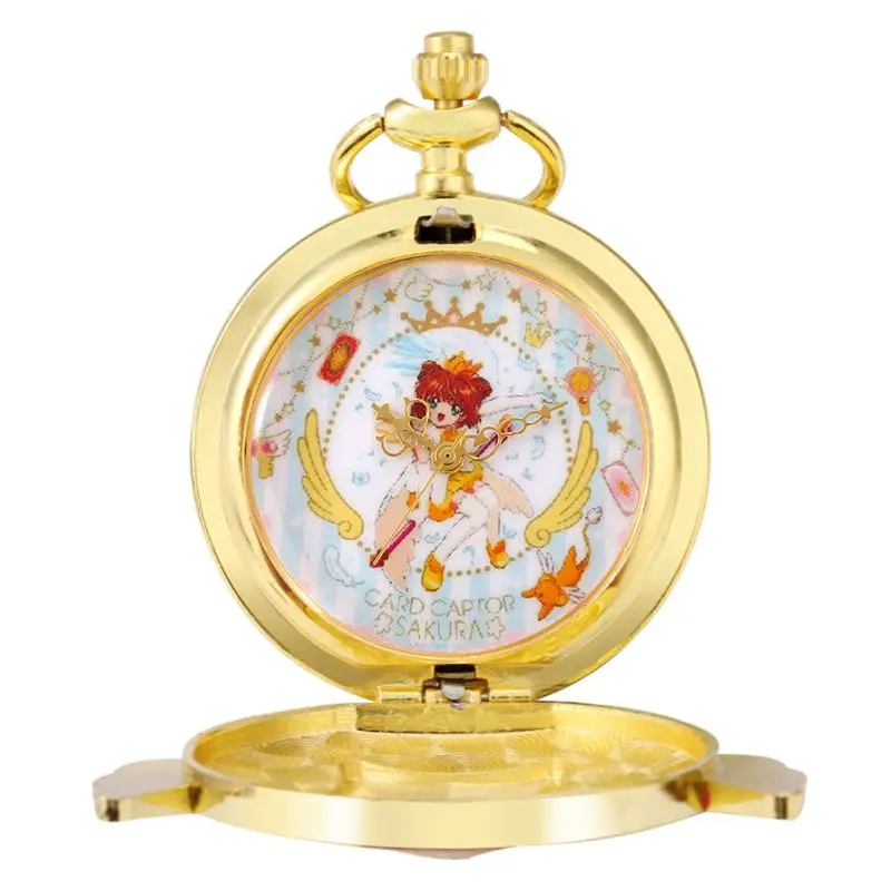 Изысканные женские карманные часы Cardcaptor Sakura, женские кварцевые карманные часы с циферблатом, женские подвесные часы из сплава