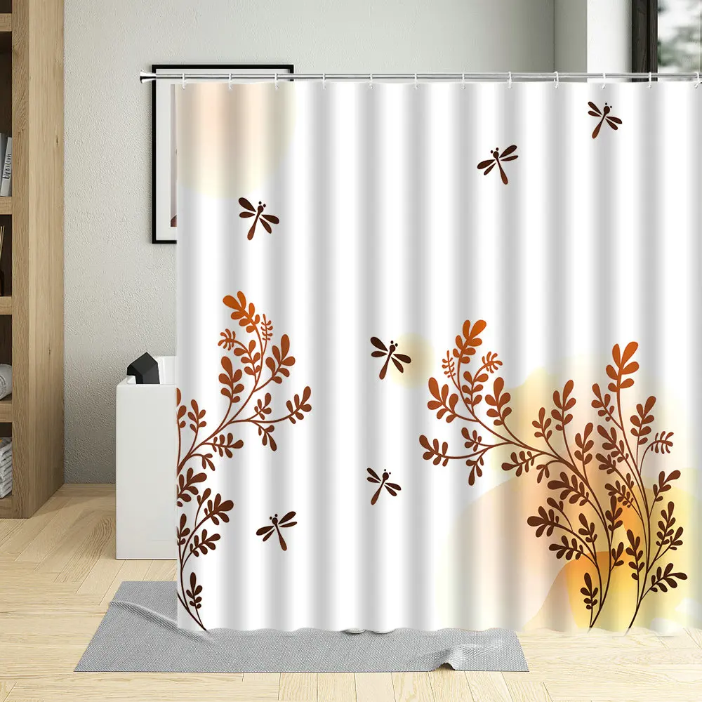 Занавеска для душа, водостойкая, с изображением цветов, растений