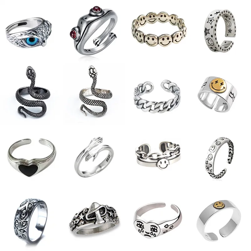 Кольцо для женщин и девушек, змея, улыбка, модное мужское ювелирное изделие, регулируемое кольцо в стиле панк, хип-хоп, бохо, лягушка
