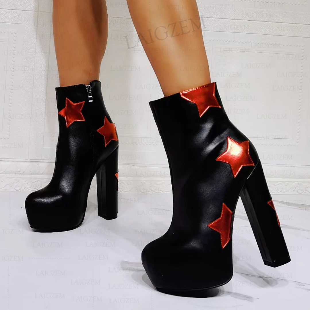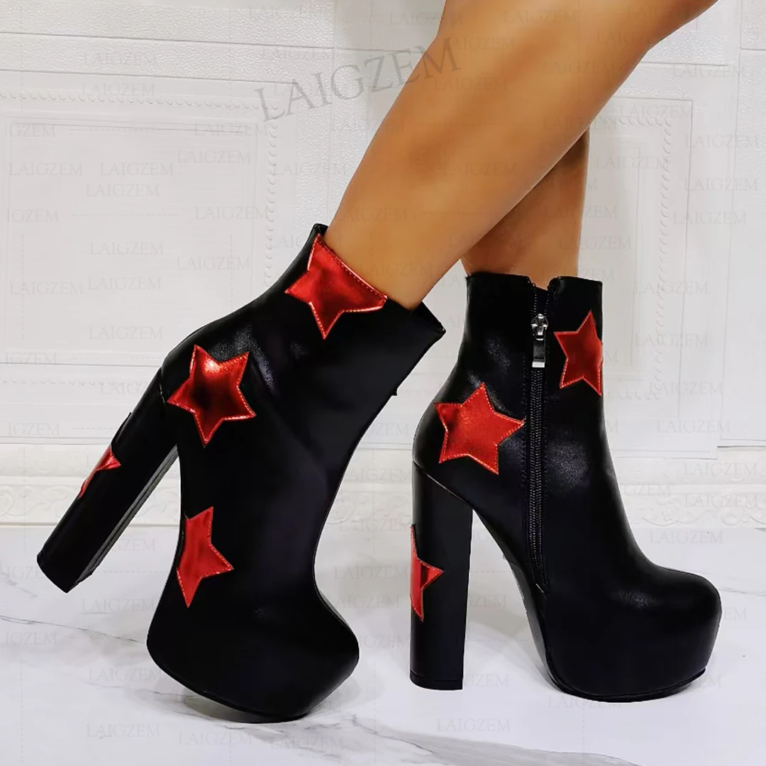BERZIMER/женские ботильоны короткие ботинки на платформе и высоком блочном каблуке Женская обувь в стиле пэчворк на молнии женская обувь, большие размеры 43, 45, 46, 47
