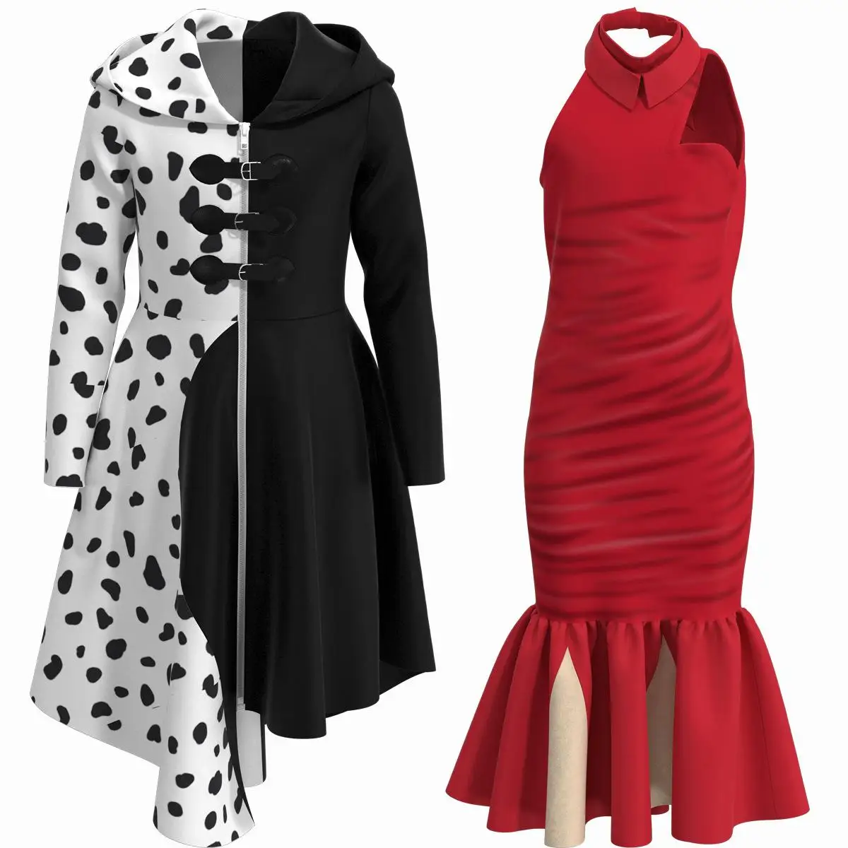 Косплей-костюм Cruella De Vil для детей сто одна далматинская одежд...