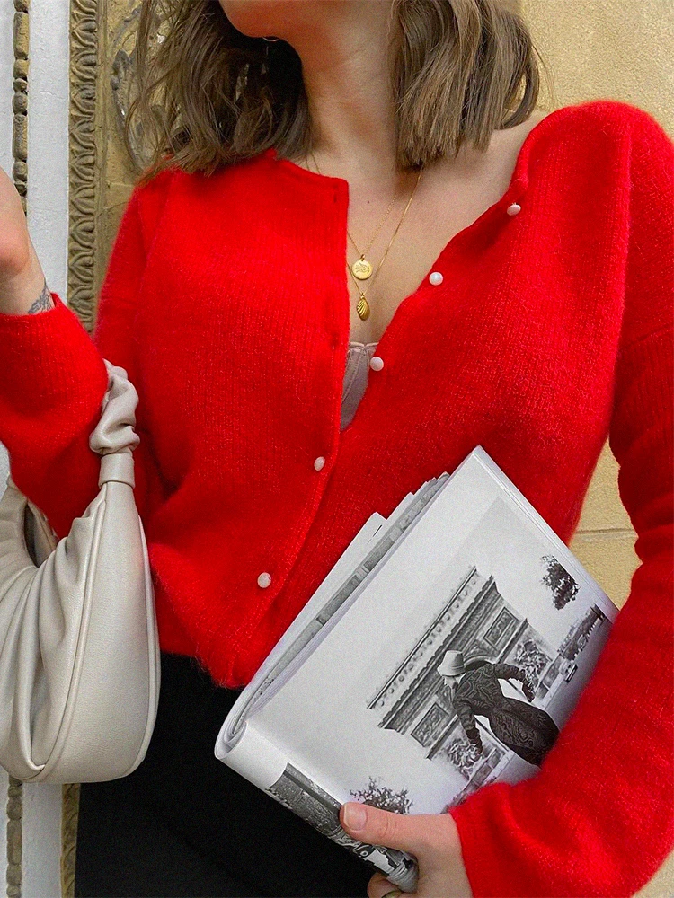Женский вязаный свитер из мягкого мохера, элегантный джемпер с длинным рукавом и круглым вырезом, повседневный винтажный кардиган на осень и зиму, 2021