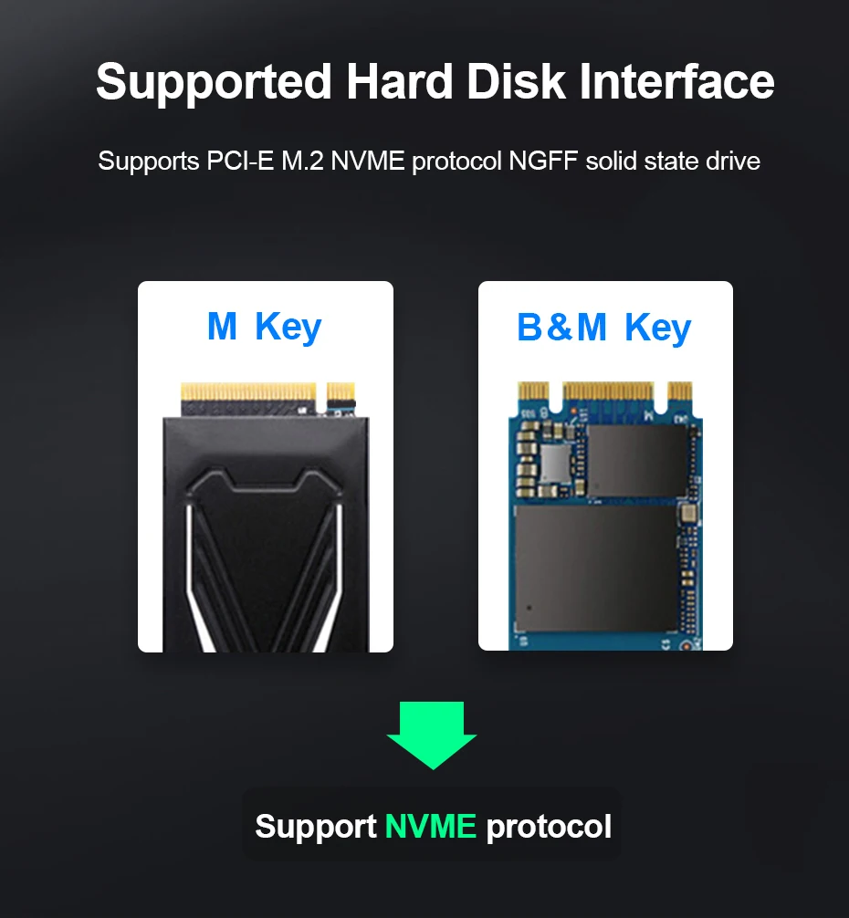 Если скорость M.2 SSD превышает 600 м/с, или если Nvme печатается на продукте, пожалуйста, выберите Nvme SSD корпус