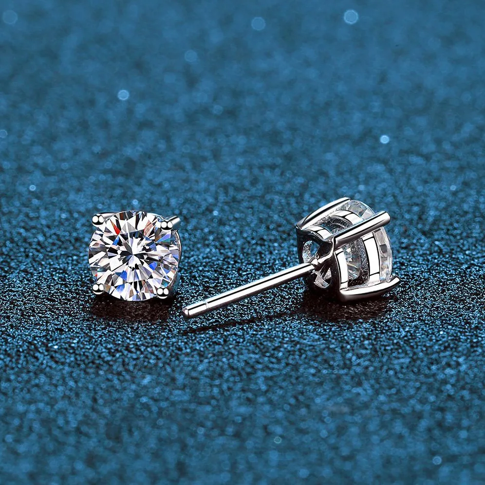 Классический 925 стерлингового серебра 0,3-2Ct D Цвет круглые серьги с муассанитом для женщин, хорошее ювелирное изделие, Настоящее простой платиной Серьги-гвоздики, высокое качество, прекрасный подарок