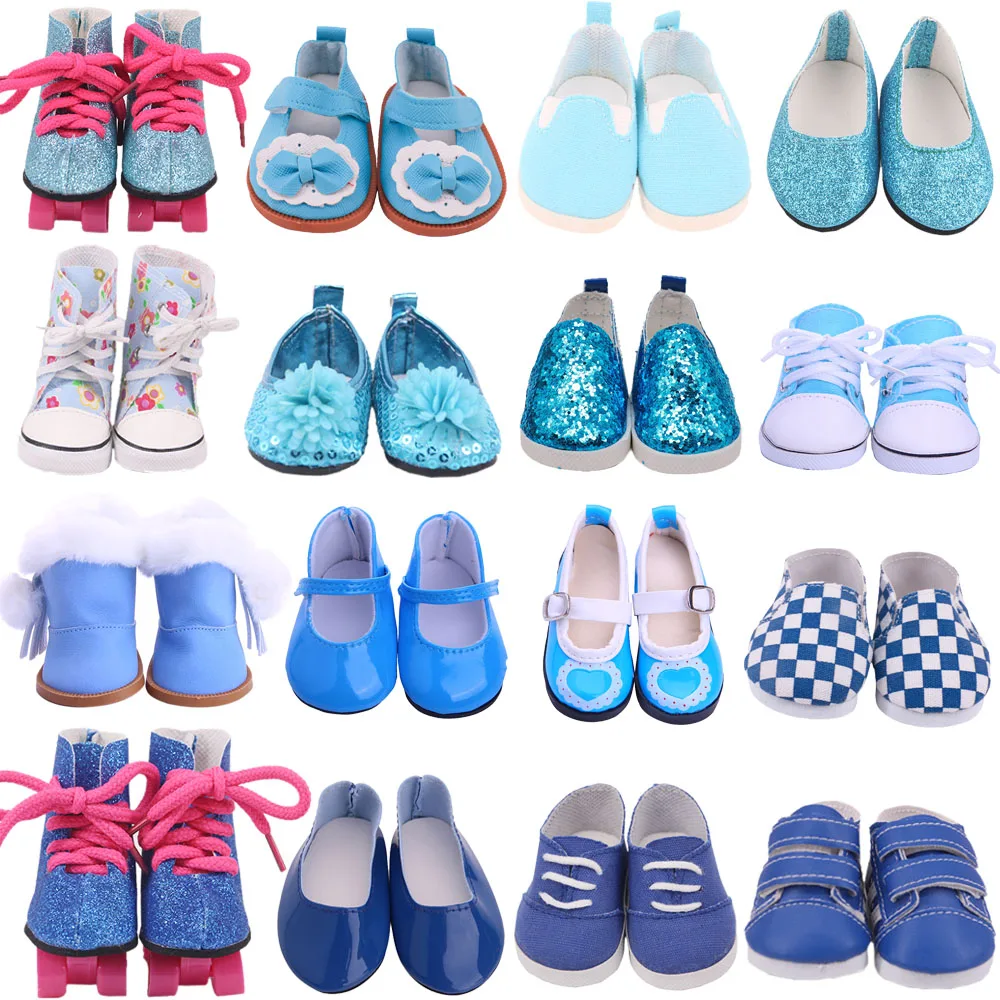 Синяя кукольная обувь, зимние ботинкисандалииобувь для доски для 18-дюймовых американских и 43 см новых кукол новорожденных, подарки для девочек в стиле фан