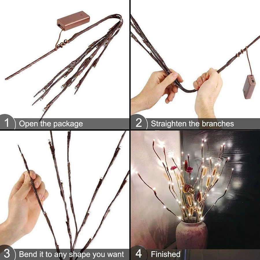Светильник в виде ветки ивы, 20 светодиодов, на батарейках, высокий наполнитель вазы, светильник в виде ветки ивы для дома, Рождественский, свадебный декоративный светильник