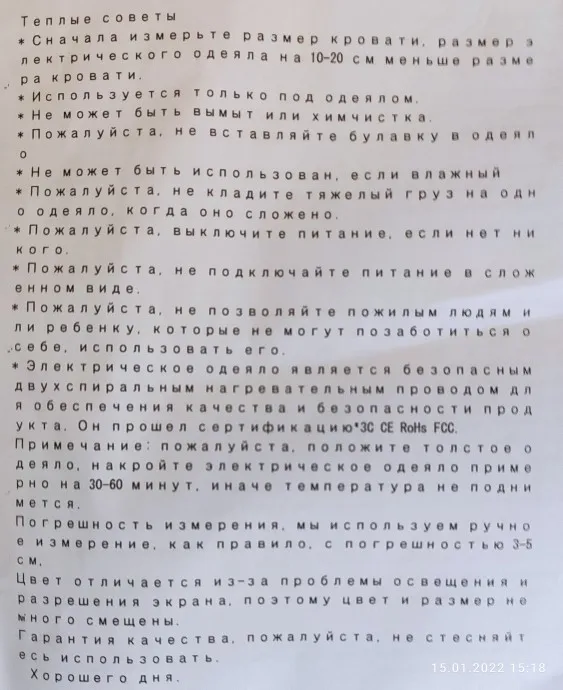 Отличное одеялко с подогревом, всем советую, цена приемлемая. Упаковали хорошо, отправили быстро, шло месяц до Волжского, но это было на момент новогодних праздников. Продавцу большое спасибо)