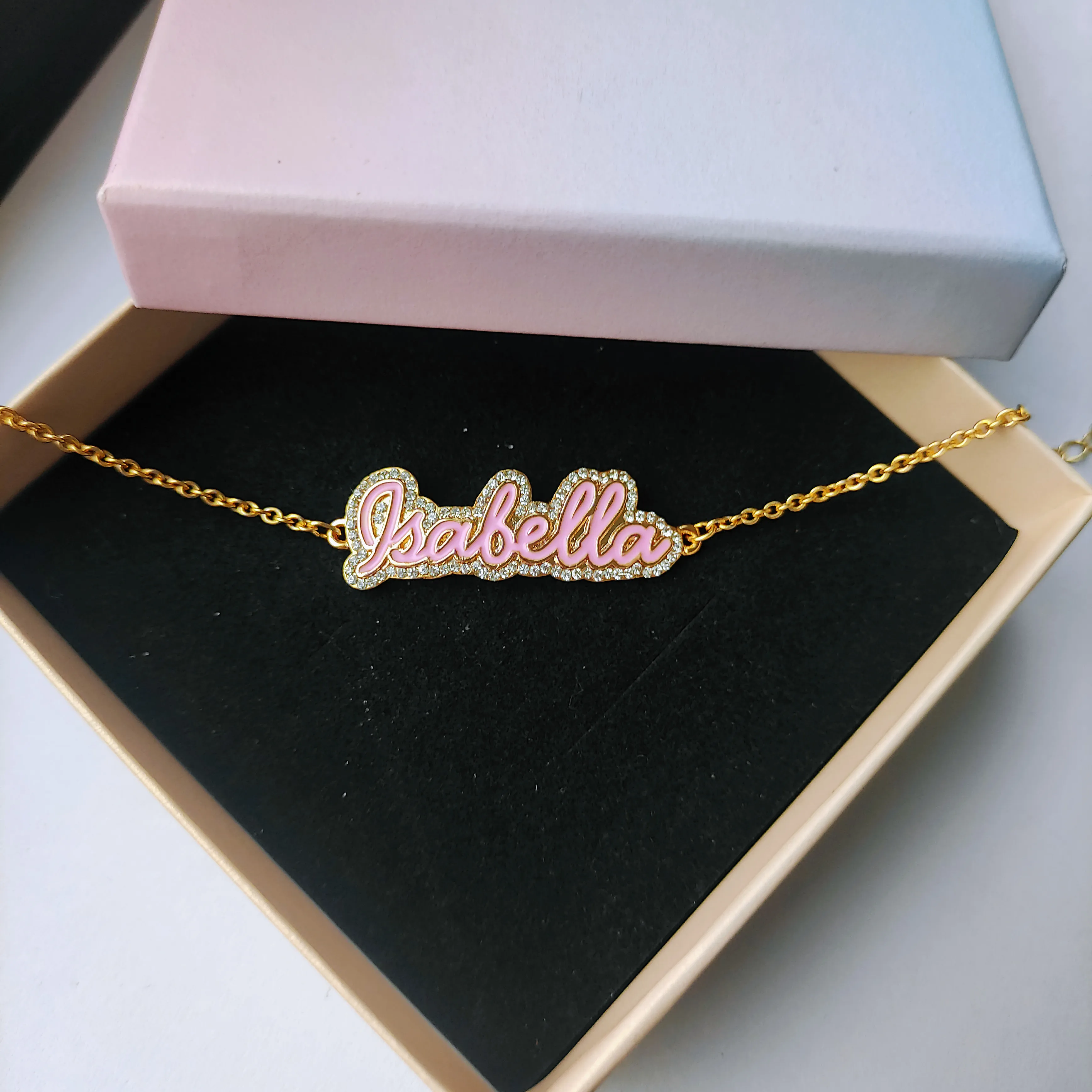 DUOYING именной браслет на заказ персонализированный закрепляющий контур эмаль с цирконием именная табличка позолоченный браслет для женщин ювелирные изделия подарок