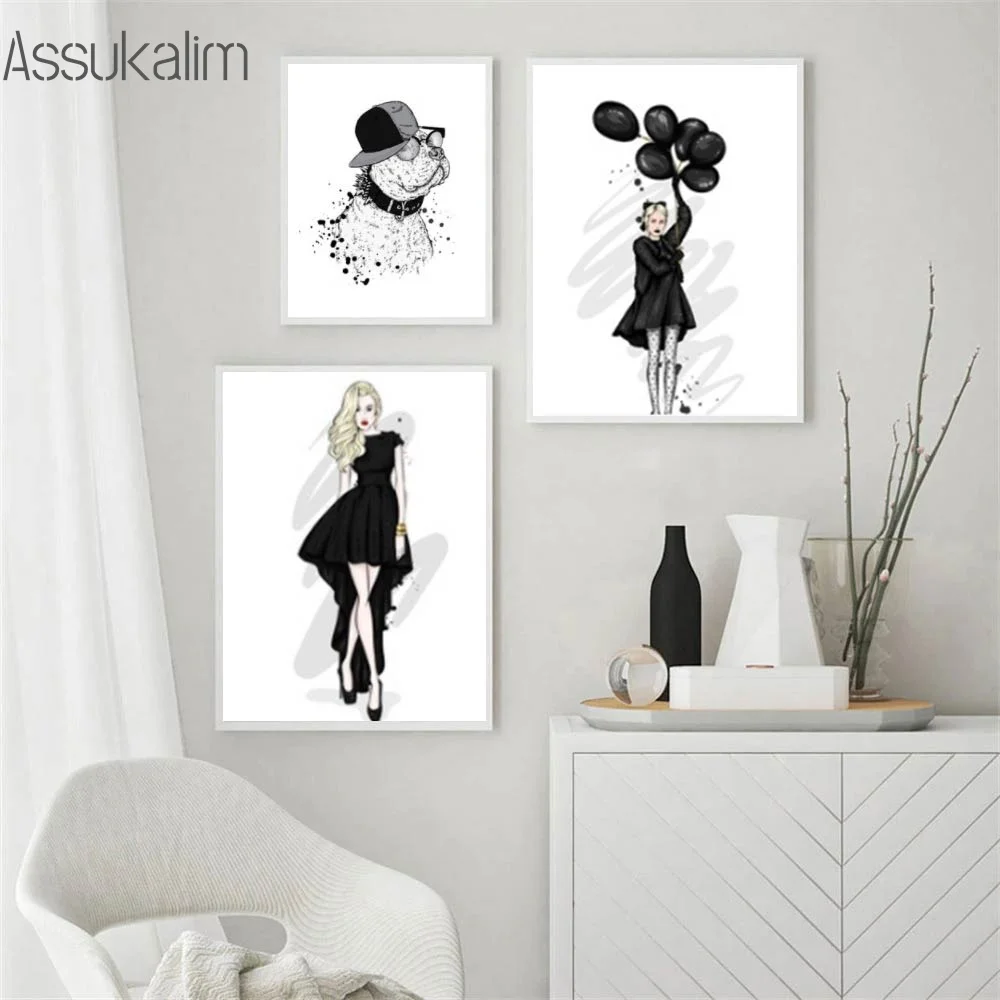 Черно-белый плакат, модная леди, настенный художественный принт, ок...