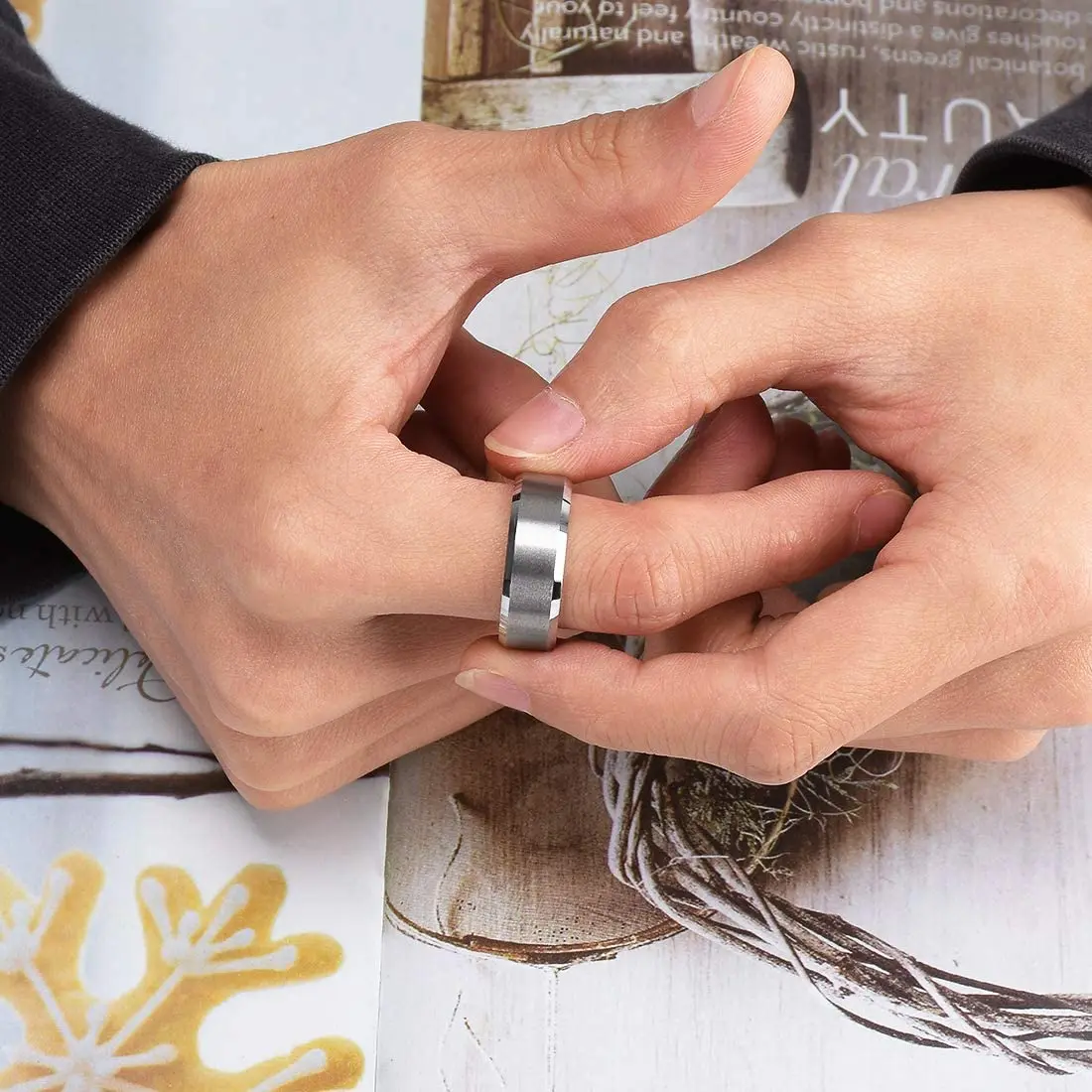 Модное обручальное кольцо 8 мм из карбида вольфрама для мужчин, кольцо со скошенными краями и голубым желобом, 2021
