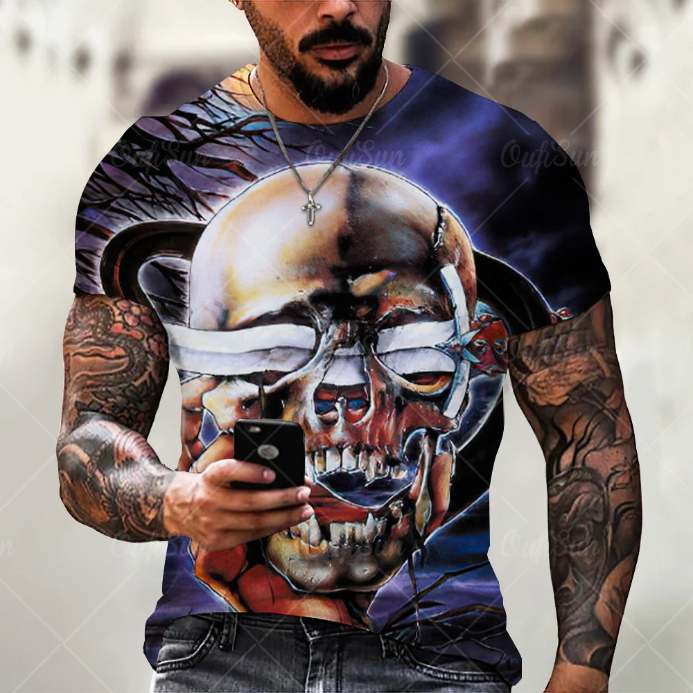Мужская футболка с 3D-принтом черепа, летняя Винтажная Футболка бол...