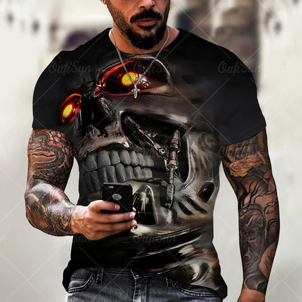 Мужская футболка с 3D-принтом черепа, модная рубашка с коротким рукавом, Повседневная Уличная футболка в стиле хип-хоп с круглым вырезом, яркая летняя футболка, новый стиль