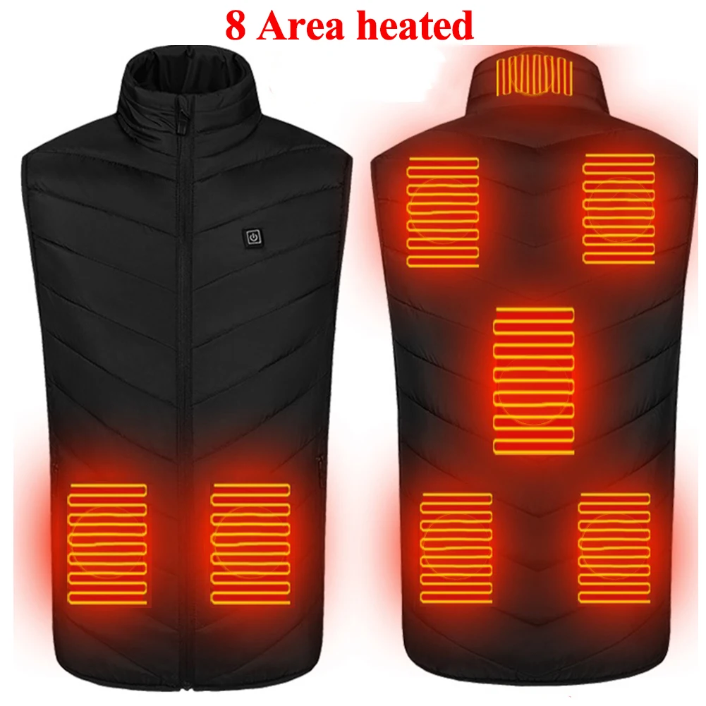 Жилет с подогревом для мужчин и женщин, зимняя безрукавка с электроподогревом и USB разъемом, жилет для рыбалки и охоты, 8 областей