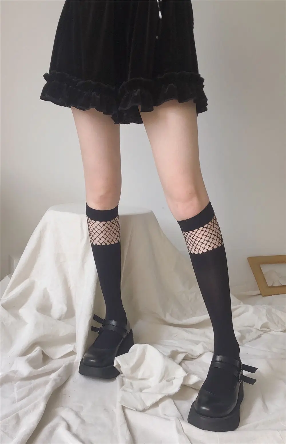 Модные чулки в сеточку, Высокие гольфы для девочек в стиле "Лолита", сетчатые бархатные гольфы, костюмы для косплея JK, аксессуары, униформа для темной девушки