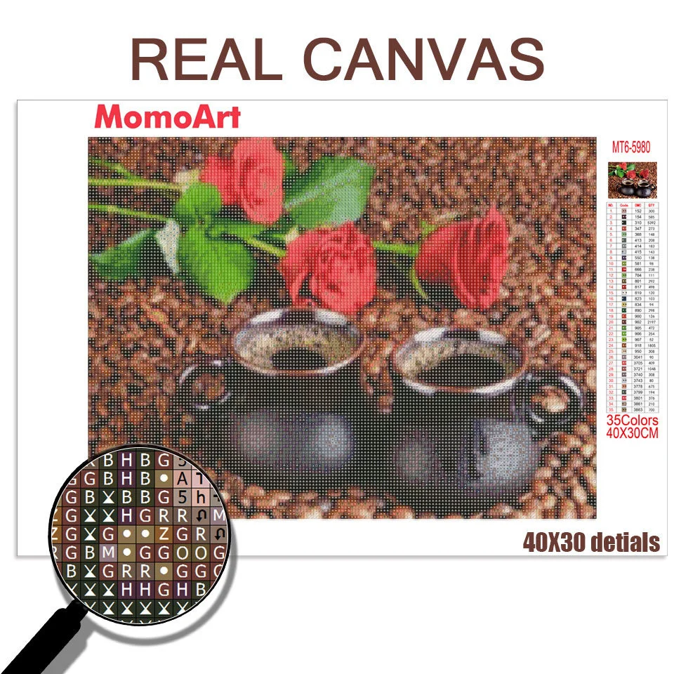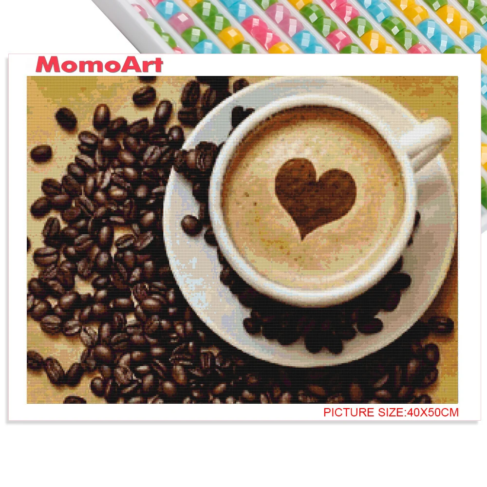 MomoArt Алмазная живопись кофе рукоделие полная площадь Алмазная вышивка пейзаж картина из страз Алмазная мозаика чашка вышивка крестиком искусство стены