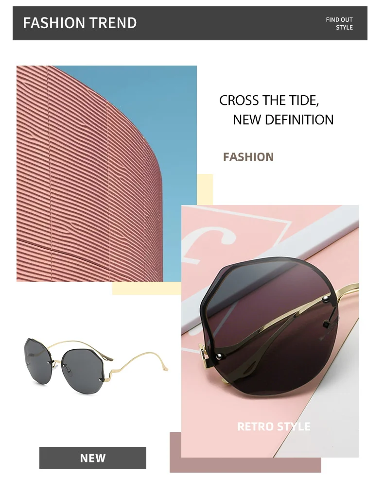 Женские солнцезащитные очки без оправы, Винтажные Солнцезащитные оч...