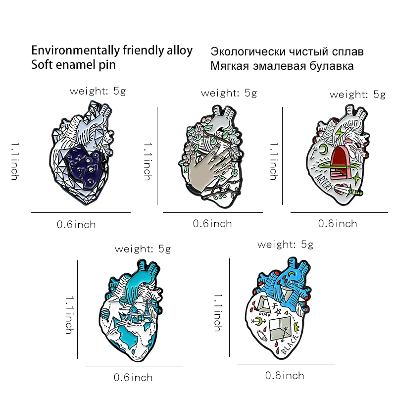 Металлические эмалированные булавки, значки в виде сердца, мрачный ...