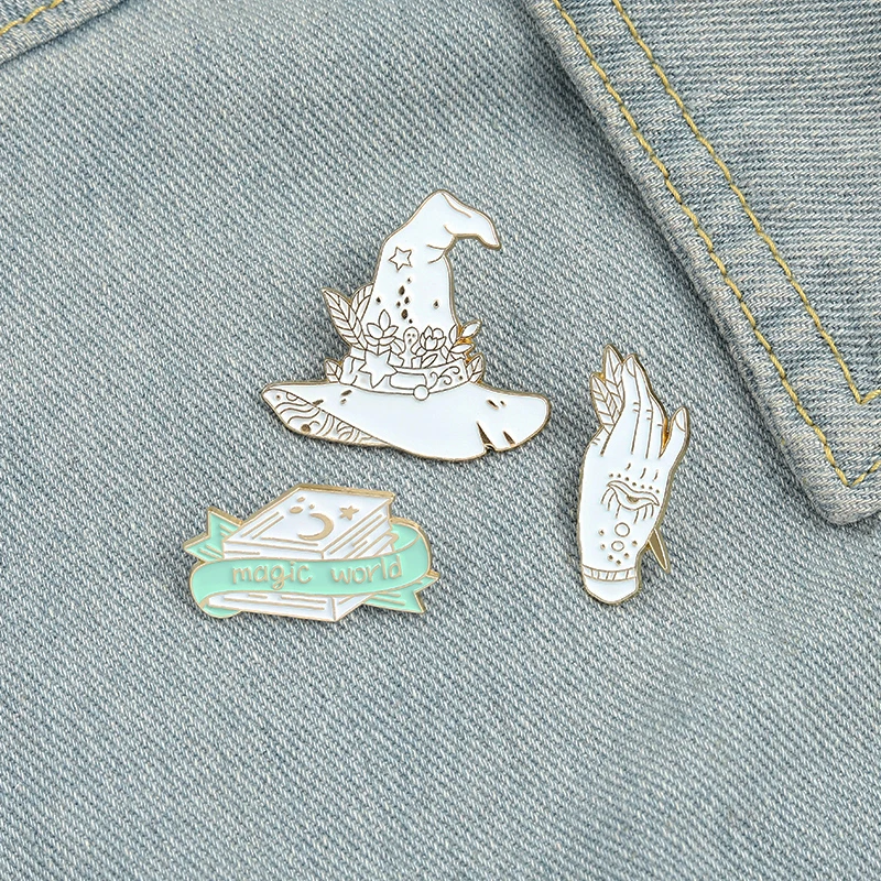 Черная эмалированная заколка в стиле панк, 3-5 шт.компл., животное, Череп, Бу, Плохая Ведьма, книга, значок, украшение на Хэллоуин, удивительная цена