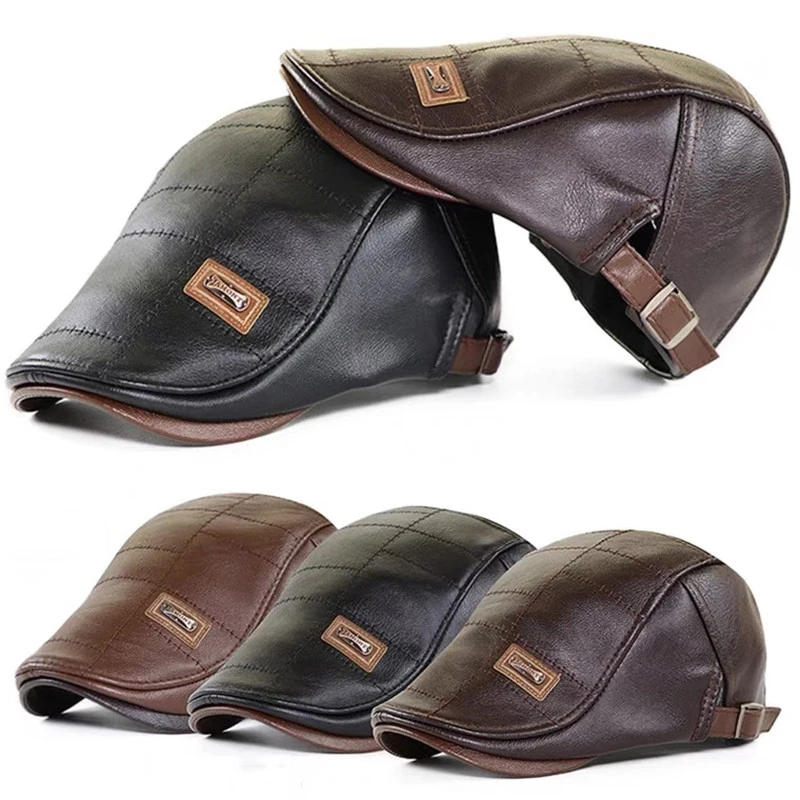 Винтажный Мужской берет, кожаная кепка газетчика, Осень-зима, теплая плоская кепка, мужской Регулируемый Гэтсби, мужские кепки