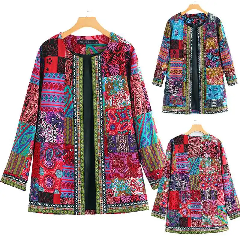 Женская куртка ZANZEA осенний кардиган с этническим принтом тонкие ...
