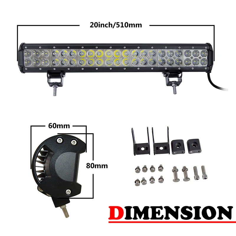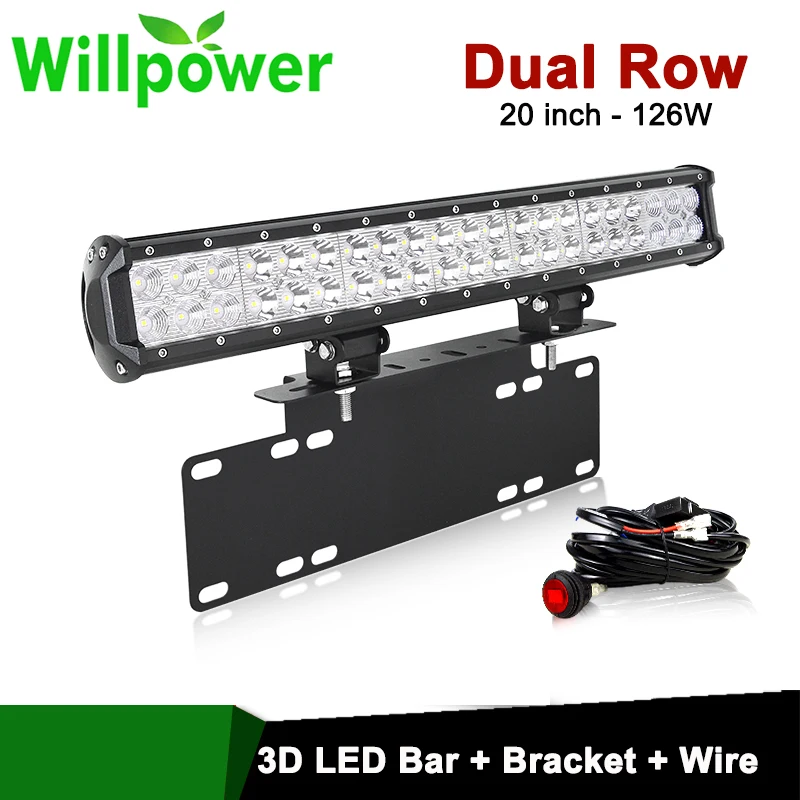 Кронштейн для крепления номерного знака, 20 дюймов, 126 Вт, 2 ряда, комбинированный светильник, держатель противотуманной фары для внедорожника, грузовика, 4x4, 12 В, 24 В