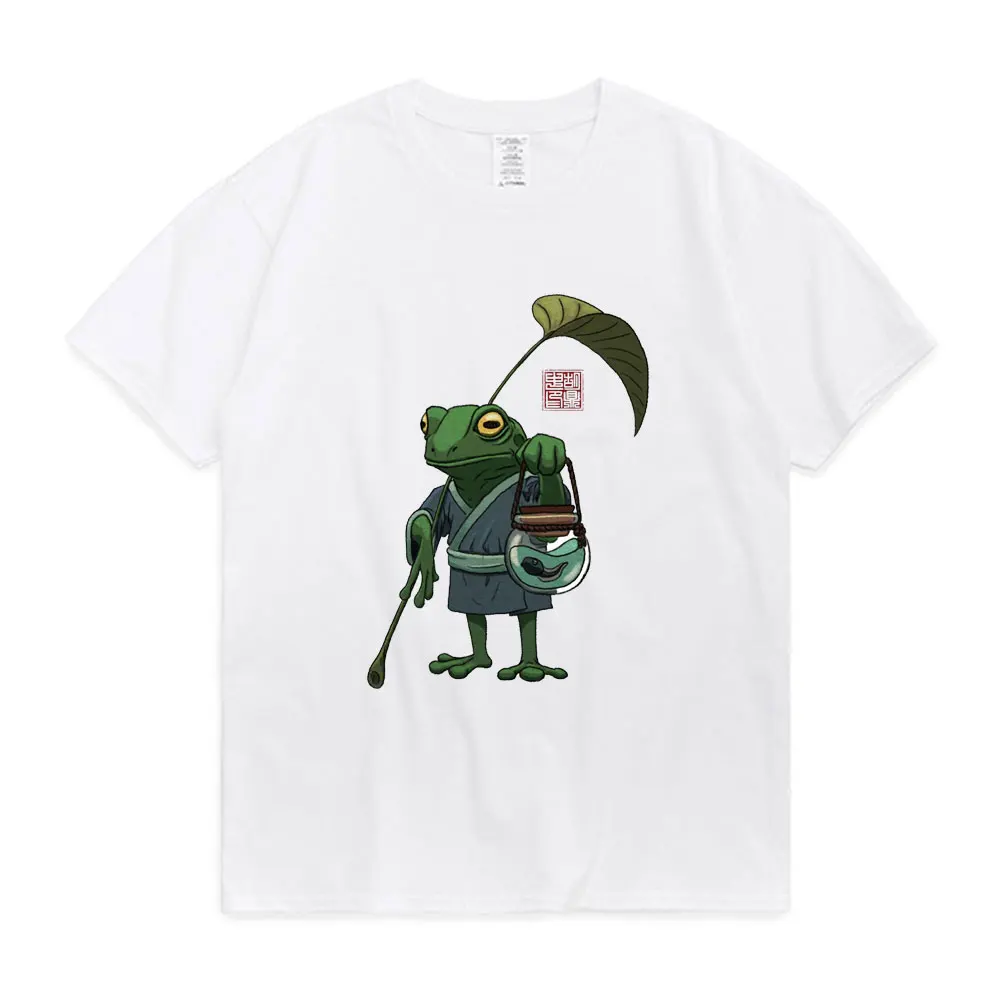 Футболка мужская с забавным принтом лягушки и его сына, летняя оверсайз футболка с коротким рукавом для мужчин и женщин, модные футболки в Корейском стиле, 2021