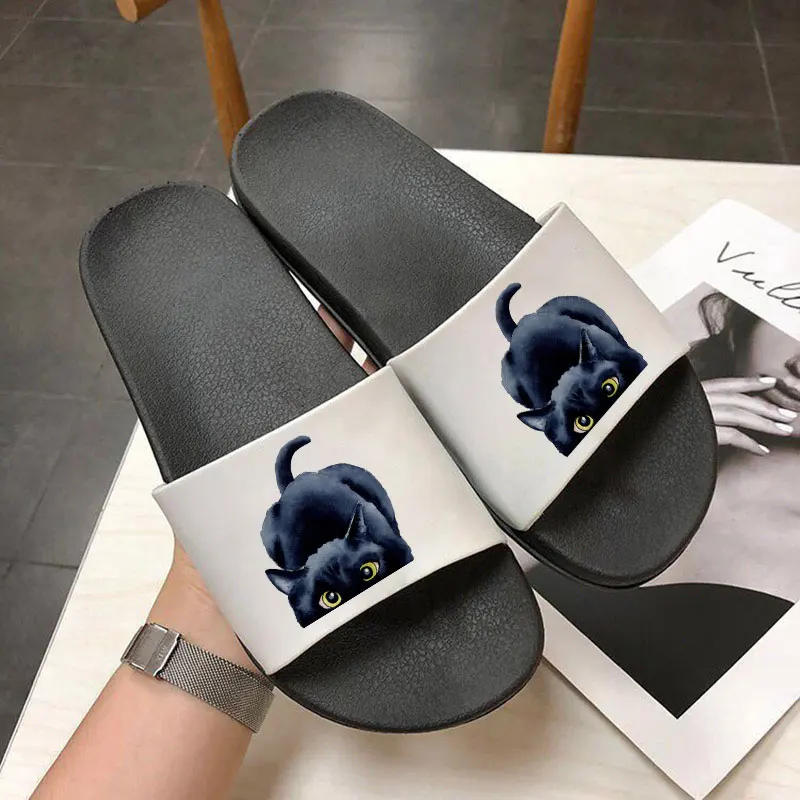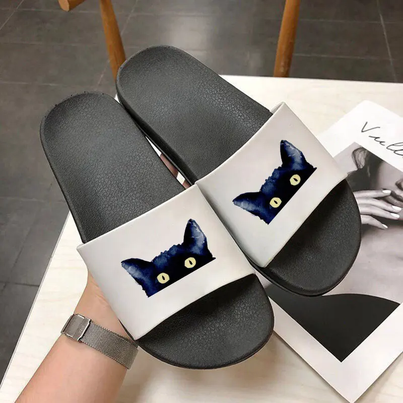 Сандалии женские домашние с рисунком кошки, шлепанцы для душа, мягк...