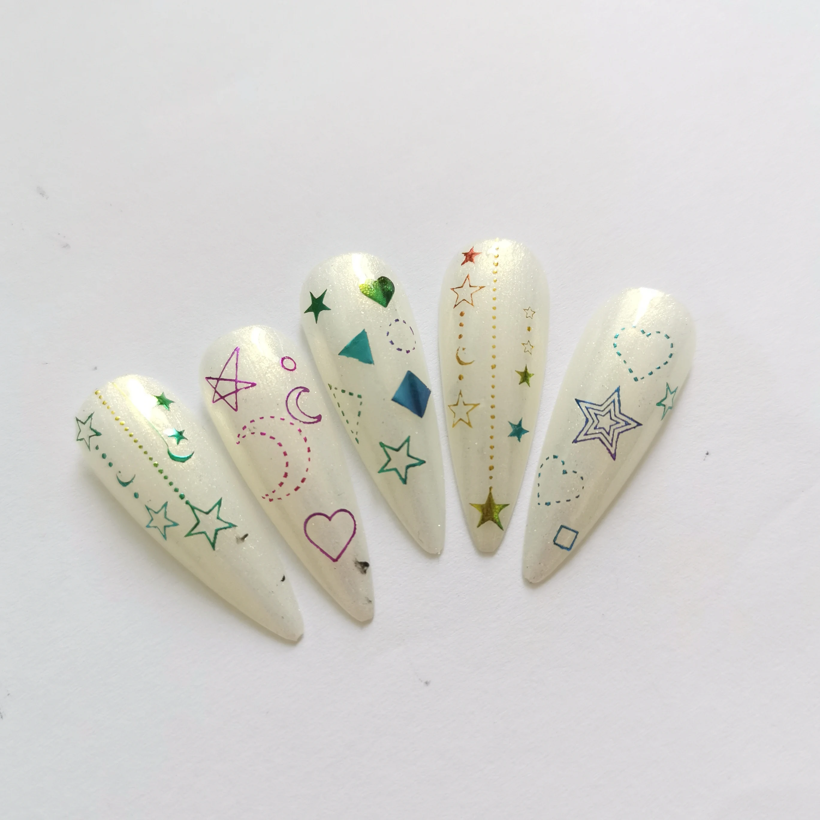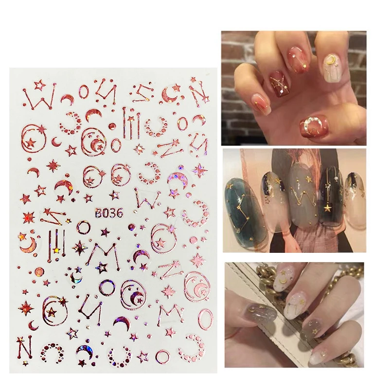 Золотые геометрические круглые Ромбы, 3D наклейки для ногтей, наклейки, звезды, луна, дизайн, Переводные Слайдеры для дизайна ногтей, декоративные аксессуары