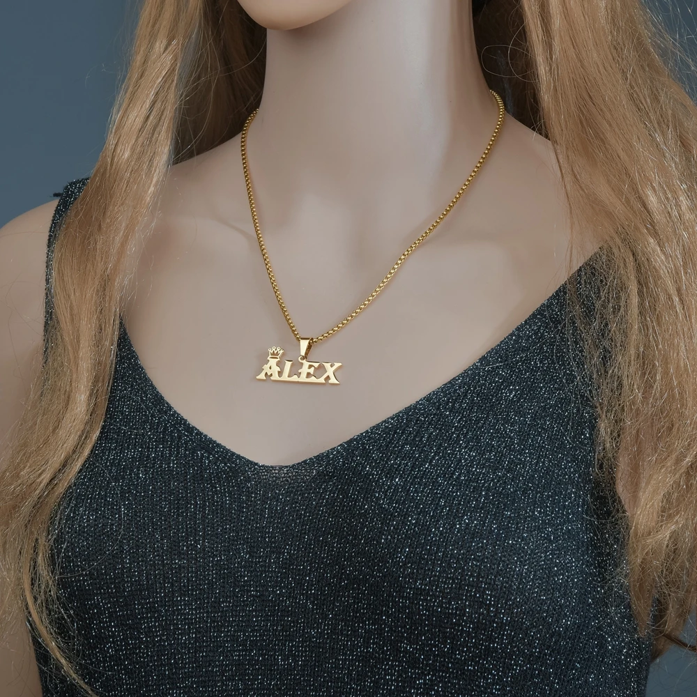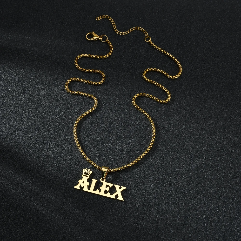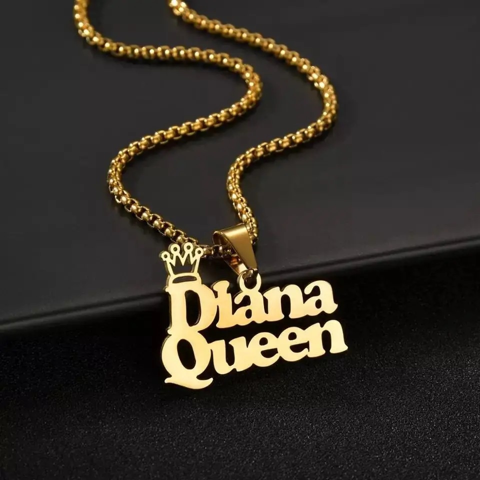 Золотая цепочка из нержавеющей стали, персонализированные именные ожерелья, подвеска в виде короны, цепочка в коробке на заказ, ожерелье-чокер, ювелирные изделия, женские ожерелья