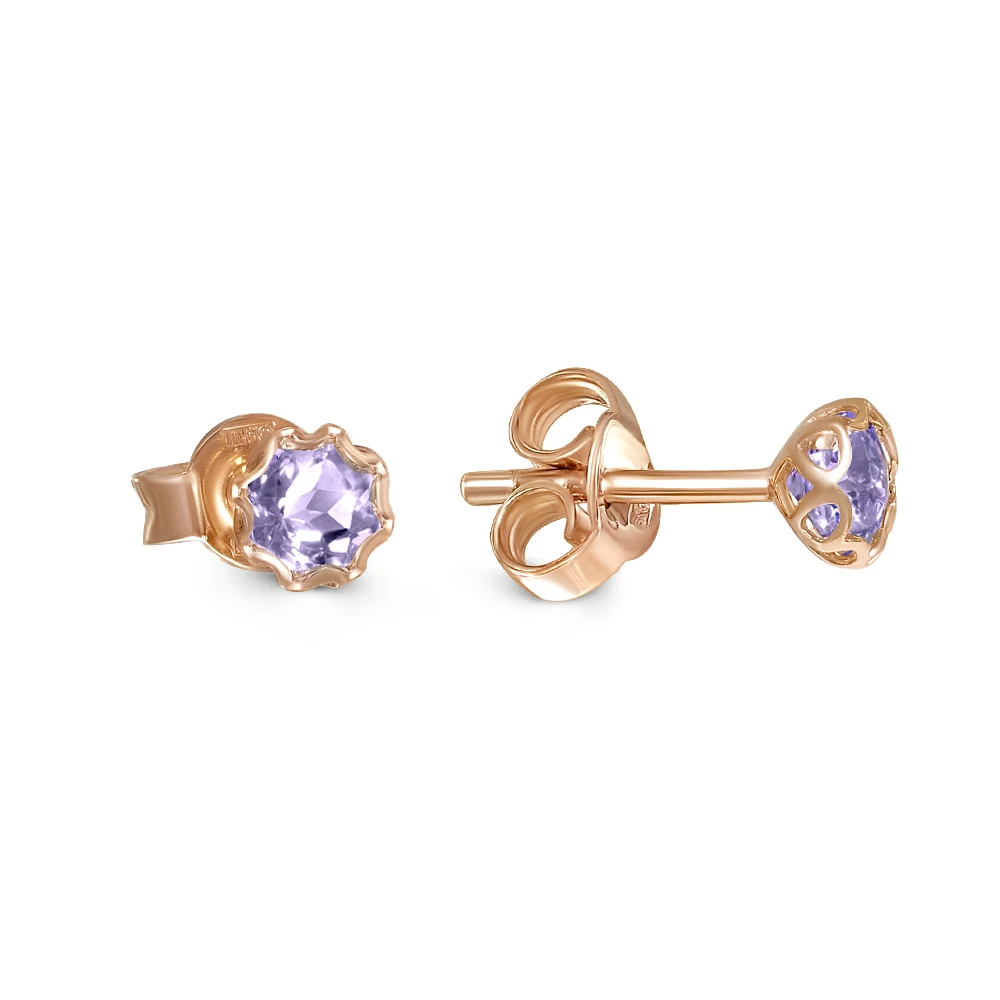 Пуссеты из красного золота с танзанитами NEWGOLD проба 585