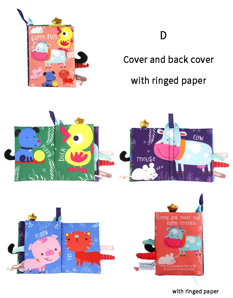 Тканевая Книжка-пазл для детей 0-36 м, для раннего обучения, игрушка-хвостик, Интерактивная звуковая бумага для родителей и детей, Мягкая тканевая книжка-погремушка для новорожденных