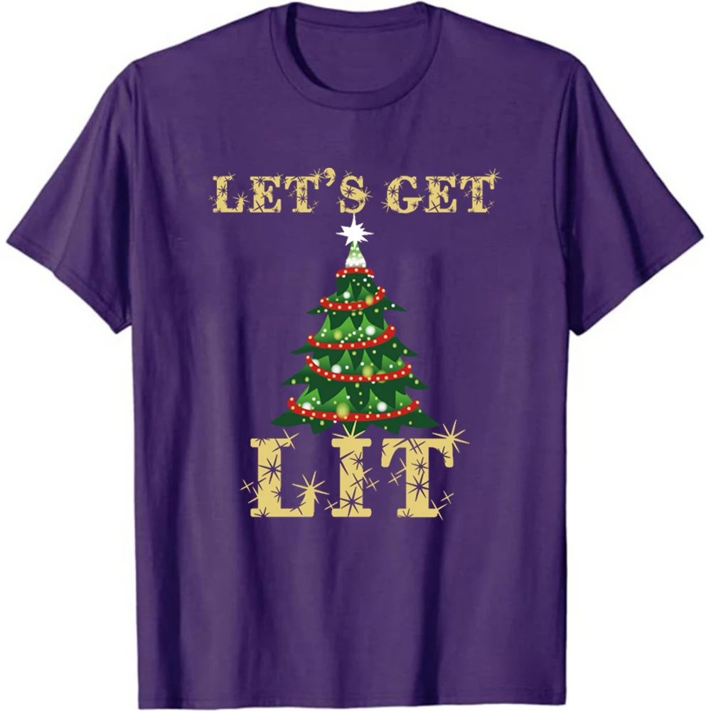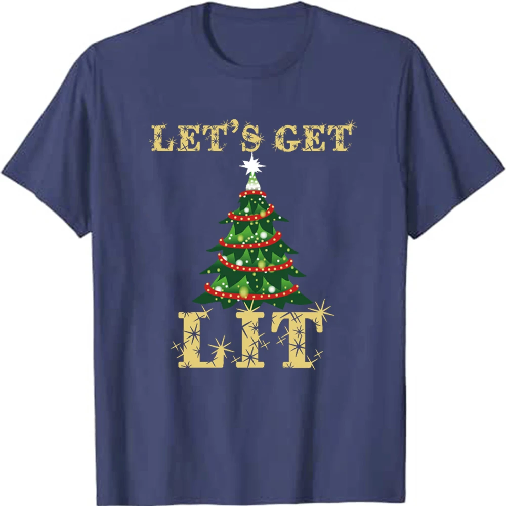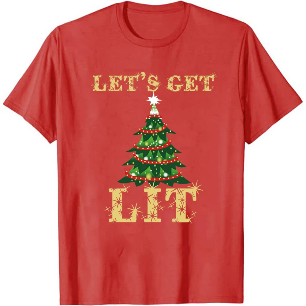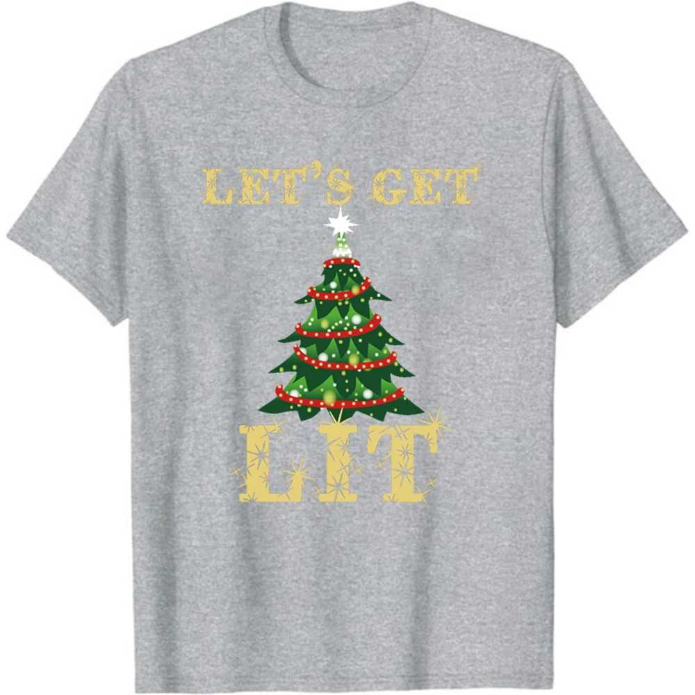 Забавная футболка с рисунком рождественской елки Let's Get Lit, топ с короткими рукавами на Рождество, хипстерская футболка унисекс на Рождество