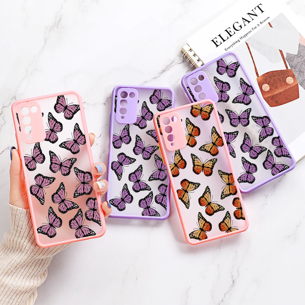 Чехол для Huawei Honor 10X Lite, защитный чехол для объектива, чехол для Honor 9A 8X 20 для Huawei P20 P30 P Smart 2021, Матовые чехлы с бабочками