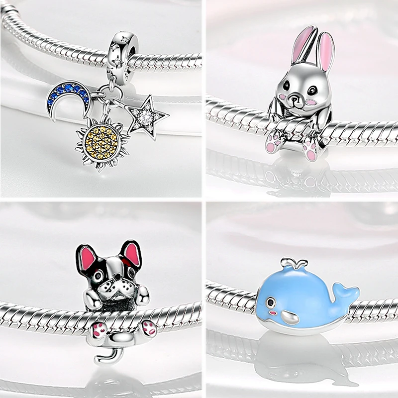 Уникальная серебряная подвеска в виде полумесяца и звезды, подвеска в виде сердца, кошки, бульдога, подходит для браслета Pandora, ювелирные изделия сделай сам