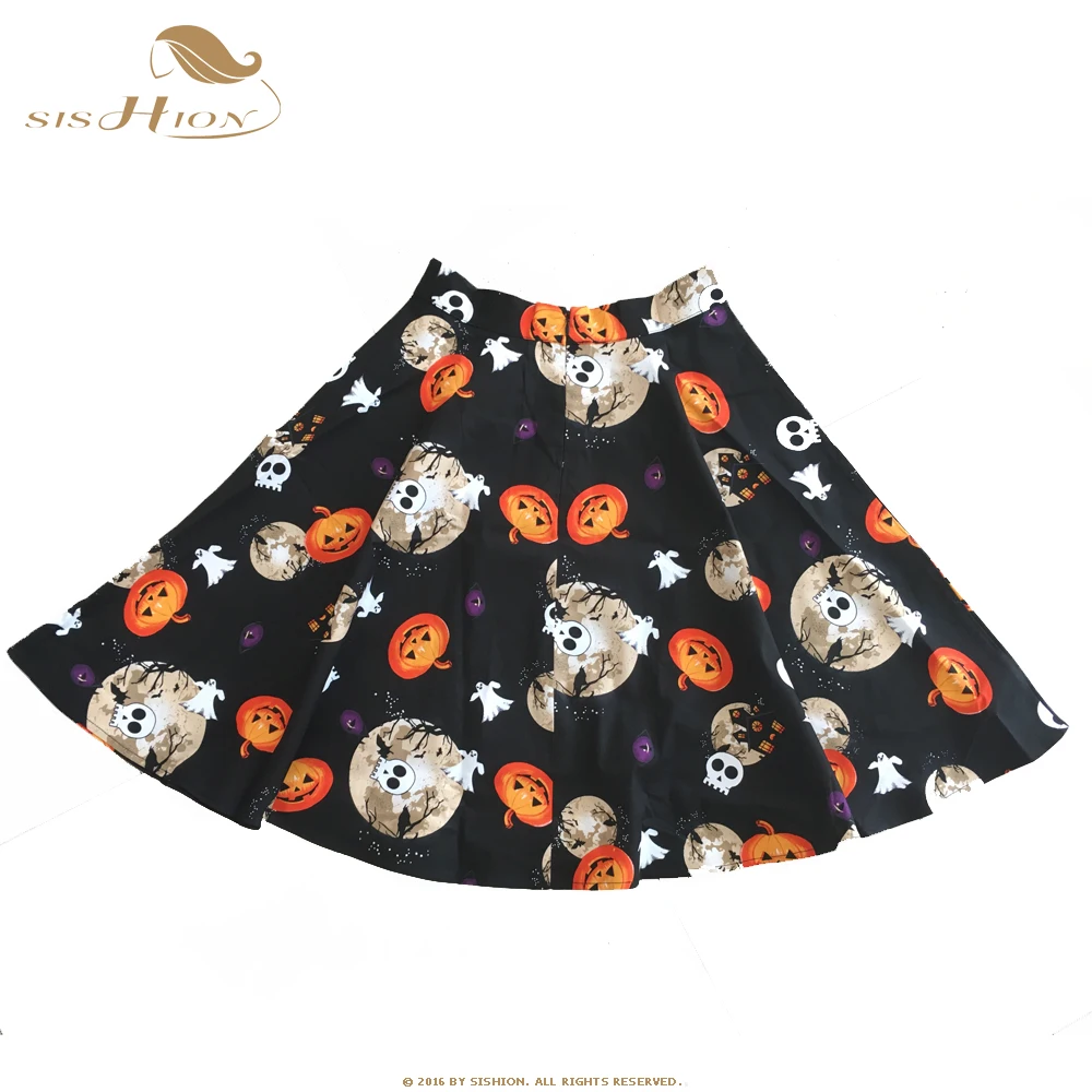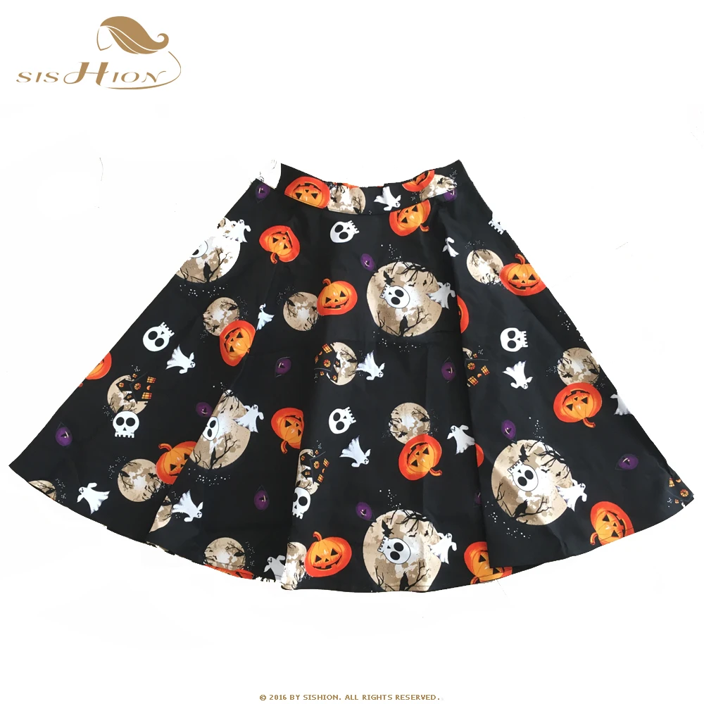 Юбка женская трапециевидная с принтом черепа и тыквы, VD0020