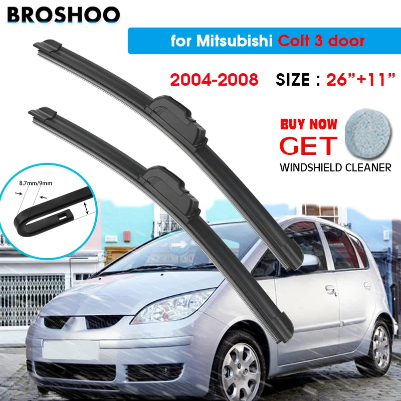 Щетка стеклоочистителя автомобиля для Mitsubishi Colt 3 двери 26 "+ 11" 2004-2008 Авто Стеклоочистители лобового стекла лезвия окно Fit боковой штырь рычаг