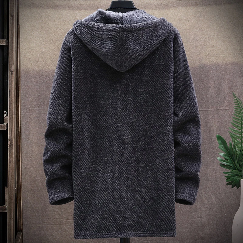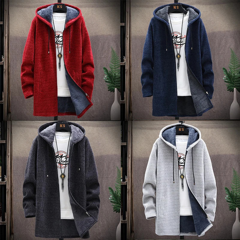 Зимний повседневный мужской свитер, теплое пальто с капюшоном в Корейском стиле, толстая Модная вязаная куртка средней длины