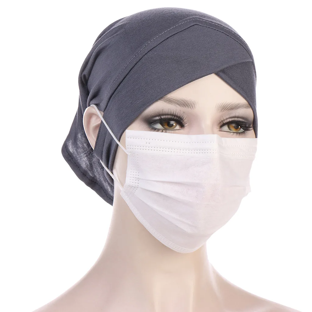 Хлопок под лоб крест с ушками отверстие стрейч Джерси внутренние хиджабы вокруг передней шапочки под хиджаб мусульманские женщины тюрбан капот