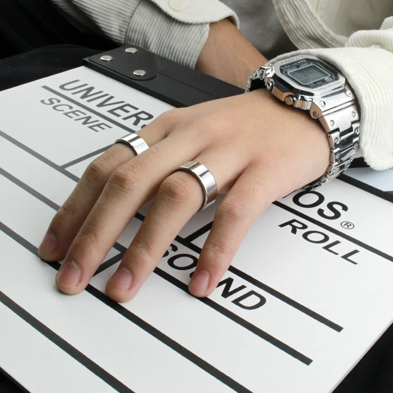 Простые Модные Стильные гладкие кольца из нержавеющей стали, Класси...