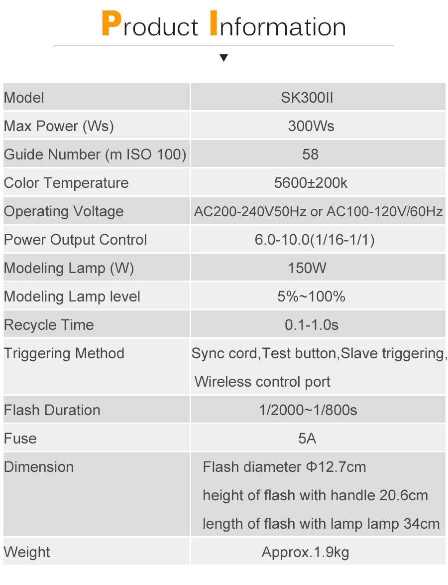 Профессиональный студийный стробоскоп Godox SK300 II 300Ws GN65 со встроенной беспроводной системой Godox 2,4G предлагает креативную съемку