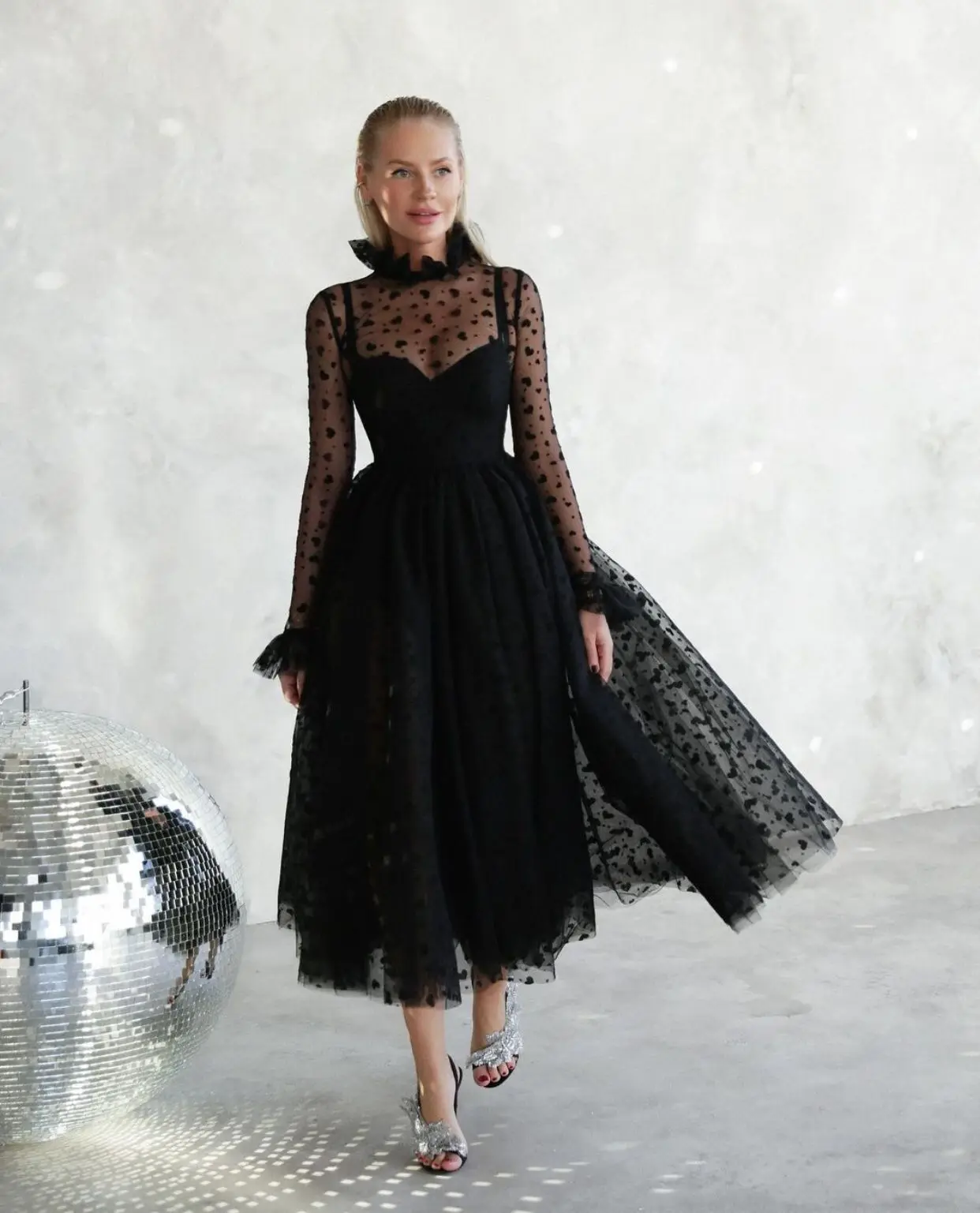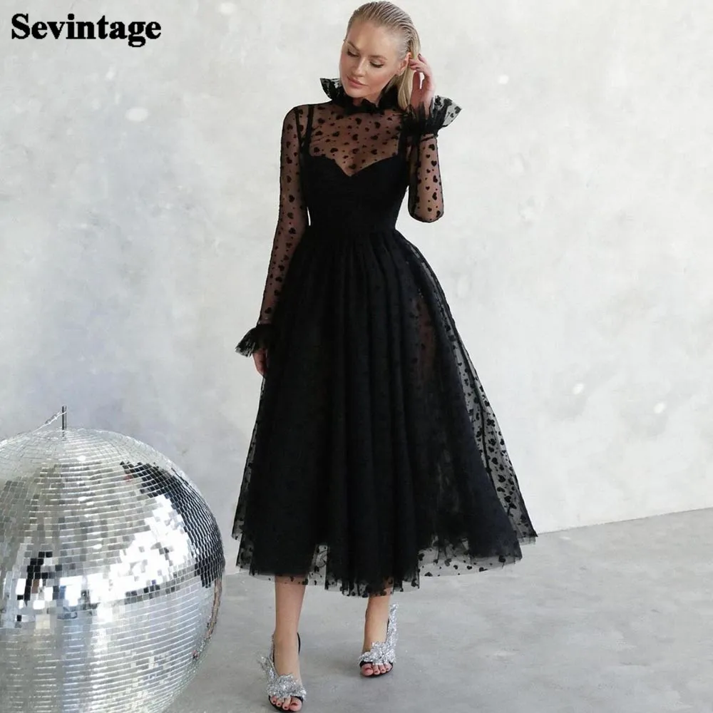 Короткое черное Тюлевое вечернее платье Sevintage с иллюзионным принтом в виде сердца, платье длиной ниже колена для выпускного вечера, Формальные Коктейльные платья
