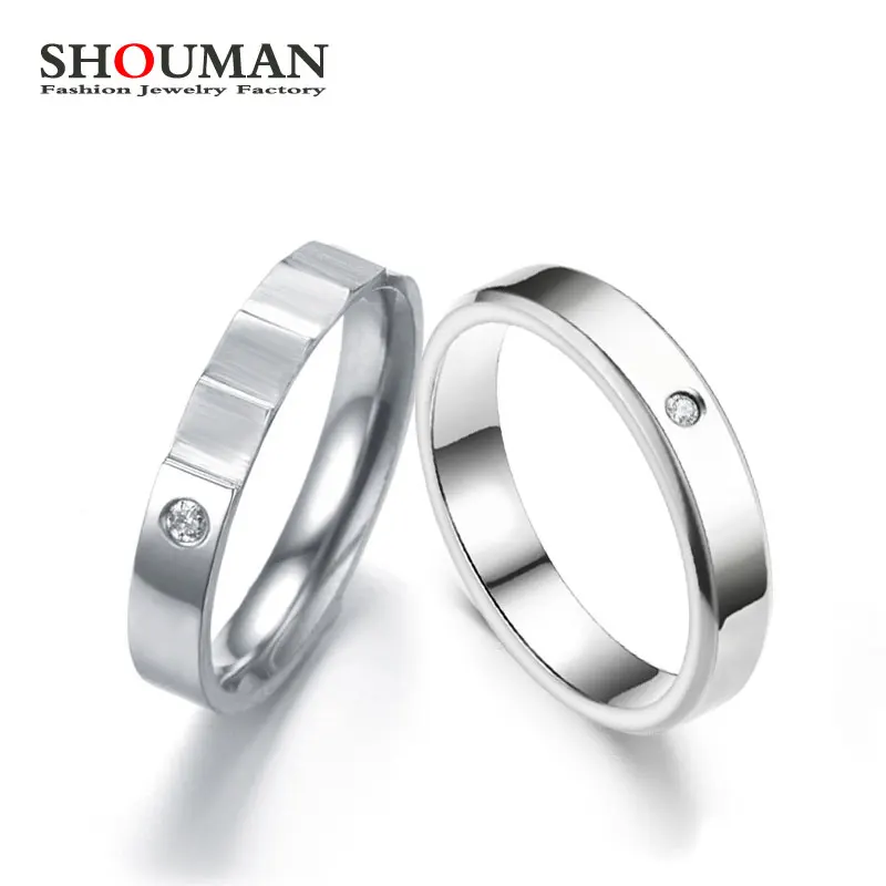 Парное кольцо SHOUMAN 4 мм с бриллиантами, Женское кольцо из нержавеющей стали, ювелирные изделия, индивидуальное название, Подарок на годовщину, никогда не выцветает