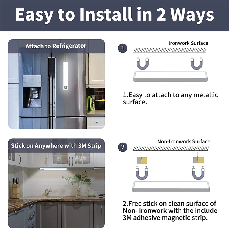 Наш светильник шкафа Встроенный магнит, вы также можете прикрепить его к любой железной работе. Не нужны инструменты, винты или гайки. Вы можете приклеиться куда угодно.