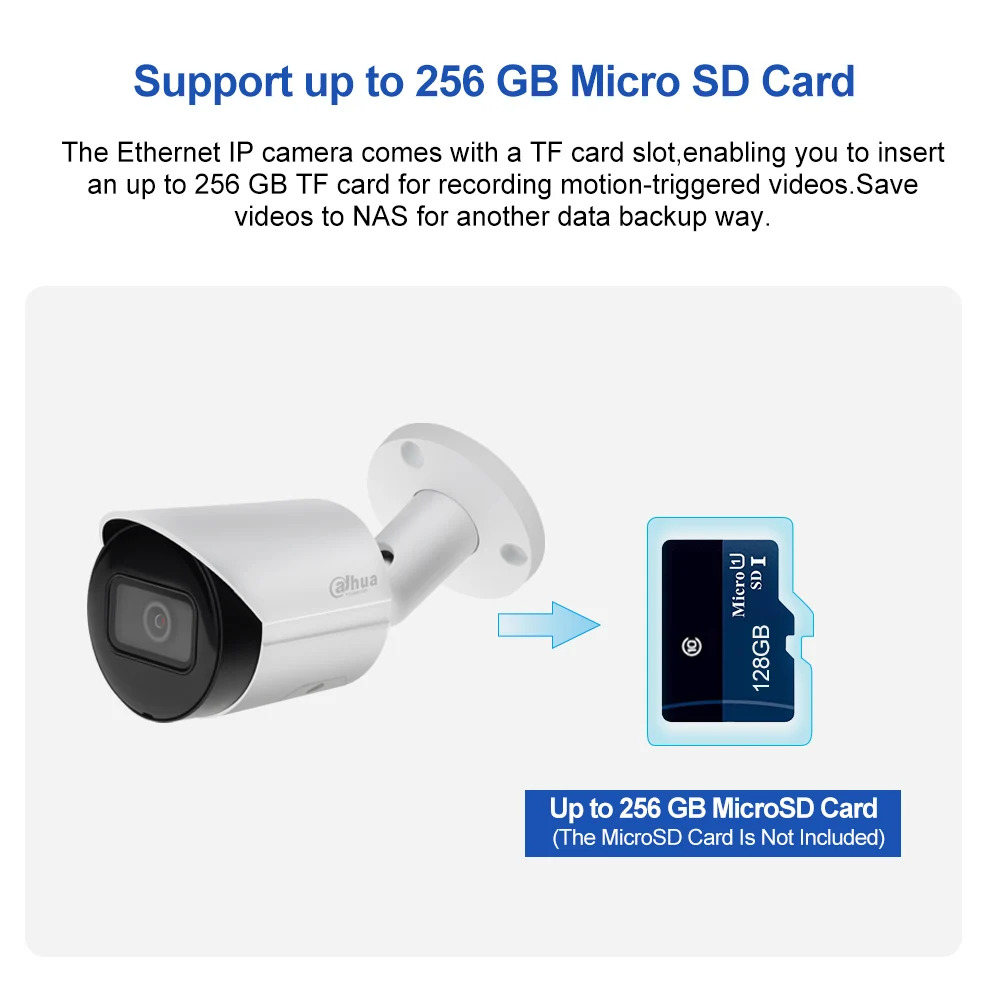 Камера Dahua 4MP Lite IR IPC-HFW2431S-S-S2 PoE Fixed-focalBullet с ночным видением, слотом для SD-карты, IP67, IVS, смарт-Обнаружение движения
