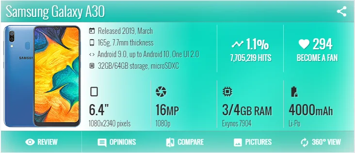 Номер моделиSM-A305F, SM-A305FN, SM-A305G, SM-A305GN, SM-A305YN, SM-A3050,SM-A305N